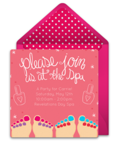 Nothing is more fabulous than a day at the spa. If parties aren't your thing, a spa day with close friends tops the list of 40th birthday ideas for many. Choose a package that includes a few services, take advantage of the spas amenities, like the hot tub, sauna, etc., then head to lunch or dinner afterwards completely refreshed. Send spa party invitations to get started with your celebration!