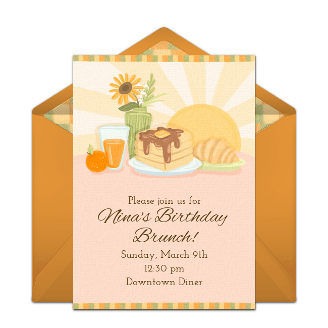 Who says fun parties only happen at night? Host a lovely breakfast celebration with these birthday brunch invitations. A brunch provides a relaxed atmosphere for friends to catch up with each other and ensures that the birthday honoree gets to eat delicious breakfast foods!
