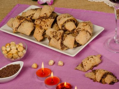 Food: Represent the miracle of the oil in your Hanukkah celebration, and cook up some tasty potato latkes for appetizers. Next, practice your baking skills. Follow the potato latkes with some mouth-watering pastry, such as rugelach, for dessert.