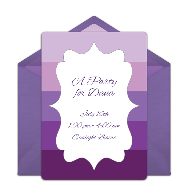 After the celebration, send Purple Thank You cards to let guests know how much you appreciate them attending. Personalize the eCards and send via text or email in minutes.