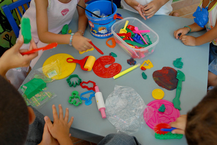 Think of a few activities you want the kids to do and assign each one to a room or a part of the venue. You should divide the time into different 20-30 minute “periods.” For example, one subject could be “art.” Here, the kids can make name tags to hang from their backpack, lunchboxes, or lockers. All you need is some cardboard, stickers, stencils, glue sticks, and a variety of tissue paper. Lay them out and give the kids some ideas for how to make fun designs. Another idea is “visit to the library.” Ask some of the moms or older siblings to dress up as “librarians” and read short stories to the kids. Make sure to choose books that are appropriate for the age group! During “gym,” have the kids go outside to play a game of kickball. There are many possibilities—get creative!