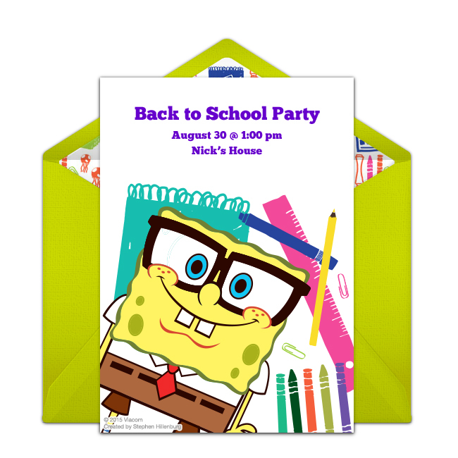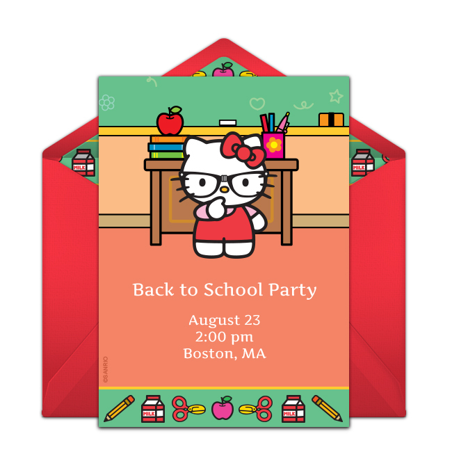 If your kids have friends who attend different schools, an online invitation is a great way to keep track of everyone. Here are a couple of festive back to school invitations. On the invitation, be sure to include where and when the party will be as well as anything that guests should bring.