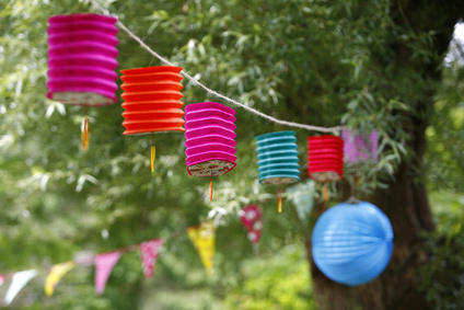 Lighting: An easy way to create ambiance at your outdoor celebration is with lighting. Choose lighting that fits the style of the party. Some type of lighting that work best outdoors include paper lanterns, tiki torches, fairy lights, and candles. If the party takes place in a buggy area, place citronella candles on every table top to ward off bugs while still creating a festive atmosphere.
