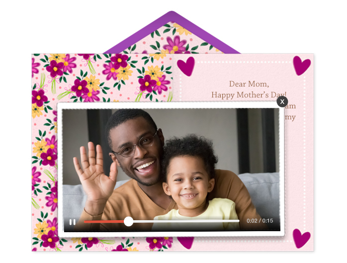 When sending happy Mother's Day eCards, try to speak from the heart and write a heartfelt message that Mom will appreciate. The message doesn't need to be extremely long. However, it's nice to include a personal note. After all, it's your mom. eblast_MothersDayVideo_050423_(1).jpg226.3 KB You can also add a heartfelt video message to any card to express just how much she means to you! If you are looking to put an extra smile on Mom's face you can include a gift card from a brand she loves!