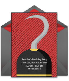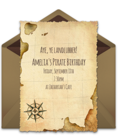 - Invitations: Create your event on Punchbowl to access a variety of kids birthday party invitations including some fabulous pirate designs. Use the invitations to give guests all the details of the party and to add a note for everyone to dress like a pirate for a costume party!
