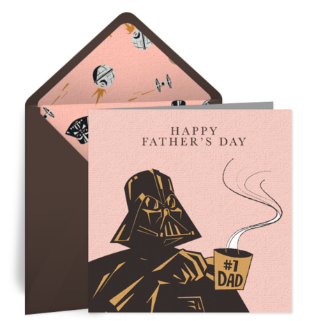 Let Dad know that the force is strong with him! Send this Darth Vader Father’s Day card, Mandalorian Father’s Day card, or Coffee Darth Vader Father's Day card.