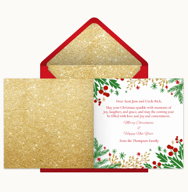 Sending Christmas cards is a great way to reach out during the Holiday season, but whether you’re sending a traditional card or one of many free Christmas eCards from Punchbowl, holiday card wording can be tricky. Christmas card greetings need to be sincere but concise. Here are a few holiday card greetings for you to use this year. Add your own personal touch!
