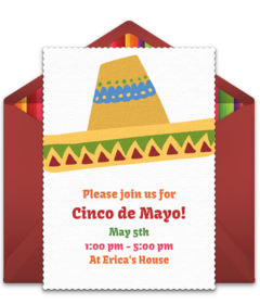 If you're planning a fiesta, send out Cinco de Mayo party invitations to let your guests know the details of the event! Browse a variety of Cinco de Mayo invites that you can customize and deliver by text or email instantly.