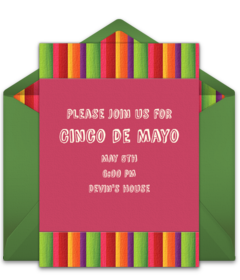 There are many different themes that you can use for your Cinco de Mayo party invitations. Whether you're throwing a Mexican Fiesta, Taco Bar Party, Mariachi Music Bash, or a kids’ Cinco de Mayo Party with piñatas, you can incorporate different aspects of your party into the invitations. For example, if you are planning to serve a variety of margaritas at your party, a margarita glass can be the focus of your Cinco de Mayo invite.
