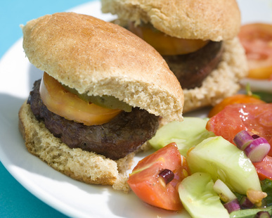 Combine the ground beef, pepper, salt, fresh pepper, minced garlic and dried onion flakes in a bowl. Make mini beef patties with your hands, about the size of a palm. Cook the patties on a grill pan or grill at medium to medium-high heat for 8 minutes (4 minutes each side) or until cooked to your desired temperature.  Remove patties and set aside for assembly later.