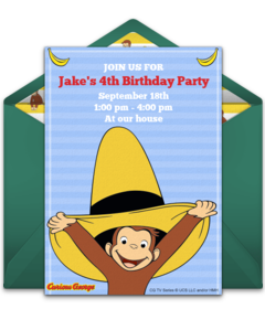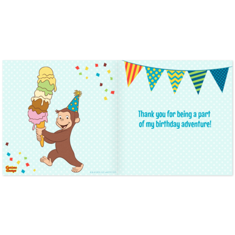 - Thank You Cards: After the celebration, send Curious George Thank You cards online to let guests know how much you appreciate them attending. Personalize the eCards and send via text or email in minutes.