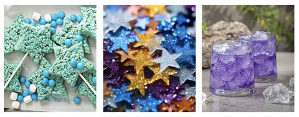 Create “Magic Potion” drinks with different colored juices, edible glitter, or colorful ice cubes (simply add a few drops of food coloring to water in ice cube trays). For something guests can munch on, make Rice Krispie treats, color them with yellow food dye, and use a star-shaped cookie cutter to create mini versions of Asha’s friend, Star. Finally, for dessert, incorporate beautiful lavender and blue hues into your frosting and decorate with edible gold stars for a stunning birthday cake.