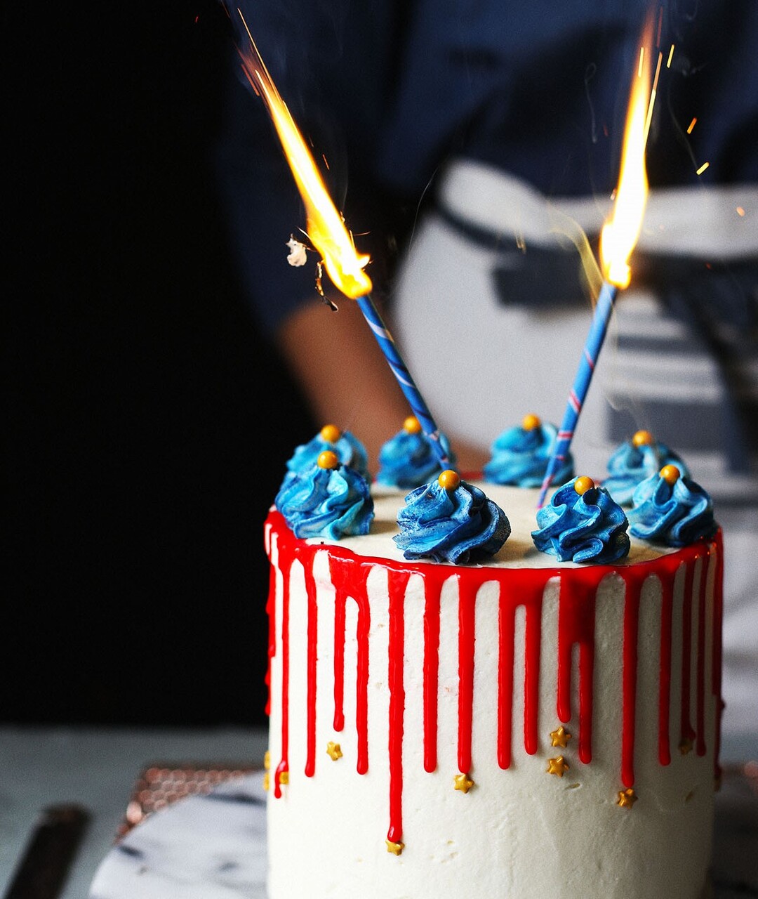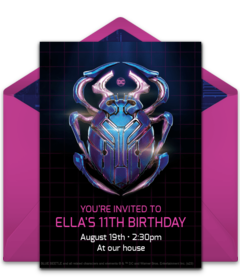 After you’ve sent your Blue Beetle invitations, it's time to think about decorations and food (think blue!). Snacks and drinks can include blueberries, Concord grapes, blue corn chips or Takis, and blue lemonade (simply combine blue fruit punch, lemonade, and Sprite). For dessert, check out these Blue Beetle cupcakes for inspiration.