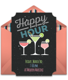 Spring is full of reasons to celebrate with Cinco de Mayo, the Kentucky Derby, Mother’s Day, Memorial Day, graduations, and Father’s Day. Make your springtime celebrations extra festive — serve up refreshing springtime cocktails! Before you dive into recipes, set the stage for your event with cocktail-themed invitations or online invitations that match your specific celebration. Deliver by text or email and manage RSVPs from any digital device.