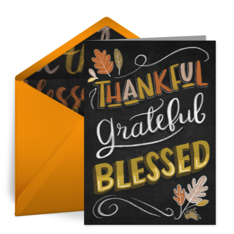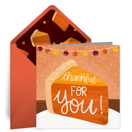 Send a Thanksgiving message to a friend or family member that you appreciate having in your life. These Thanksgiving Pie eCards are a huge hit, and our chalk-art designs are always appreciated!