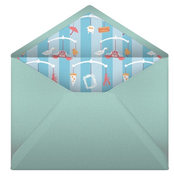 You can even celebrate life’s major milestones with a Friends engagement party invitation (aptly titled “The One Where We Got Engaged”); a Friends themed bachelorette party invitation that features Monica, Rachel, and Phoebe dressed in wedding gowns; and a Friends themed baby shower invitation with a liner that incorporates lobsters, a turkey wearing sunglasses, and other fun Friends elements diehard fans will appreciate.
