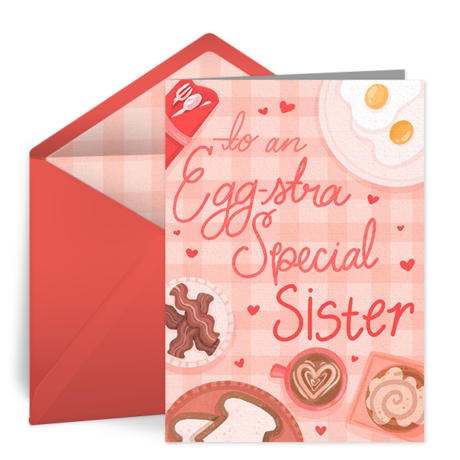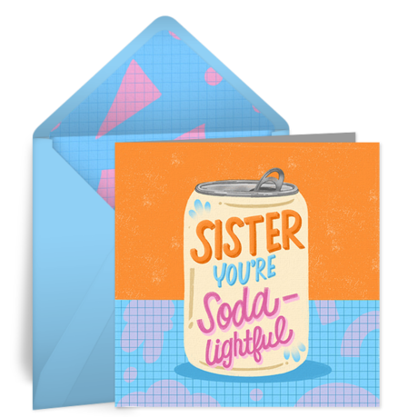 Let your sister know she’s soda-lightful with this Soft Drink Mother’s Day card or tell her she's egg-stra special with this Brunch Mother’s Day card.