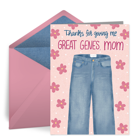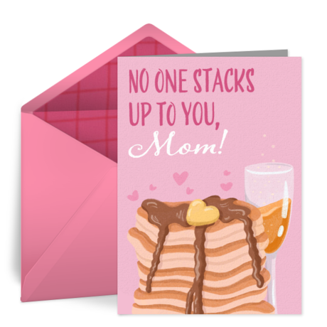 Thank Mom for your smarts, kindness, and amazing looks with this Great Genes Mother’s Day card, or tell her no one stacks up to her with this Pancake Mom Mother’s Day card.