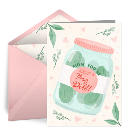 Let Mom know she's a "big dill" with this Pickle Mother’s Day card or tell her you "love her loads" with this Laundry Mother’s Day card.