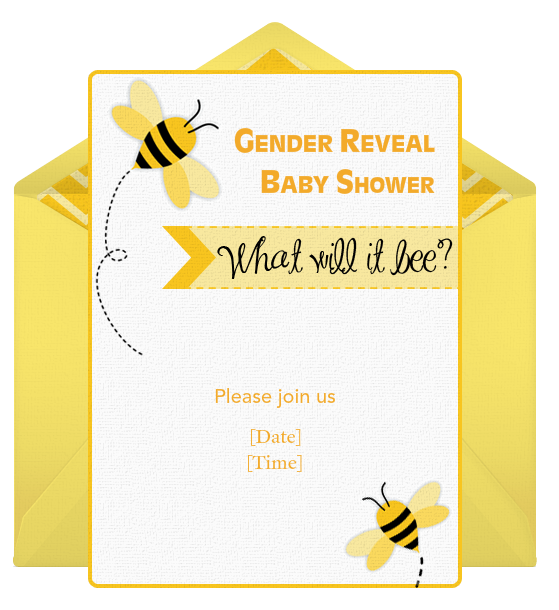 Invite family and friends to participate in the special moment when you learn the sex of your baby. One classic theme for a gender reveal baby shower invitation is "What will it bee?" Check out this beautiful design: