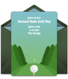 Send Dad and a few of his buddies or family members an online Father's Day golf invitation to a tee time at his favorite golf course (all expenses paid, of course). Customize your favorite invitation with important event details, send via text or email, and gather RSVPs in minutes.
