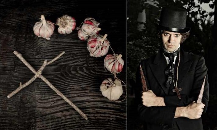 For women: Wear something very similar but make it more feminine by choosing an old tattered dress or skirt in a dark color. For make-up, smudge bronzer, eyeliner, and mascara on your face to make it look like you’ve been hunting in the wilderness. Accessorize with a garlic necklace, garlic bracelet, garlic earrings and weapons. Finalize your vampire hunter costume with a fake vampire location map and wooden torch.