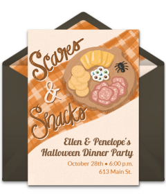 Halloween is a great time to get your friends and family together to eat some yummy fall foods. Before you start planning your menu, be sure to send online Halloween invitations to share important details with guests. Browse gorgeous Halloween invitations, customize your favorite, then send by text or email in minutes!