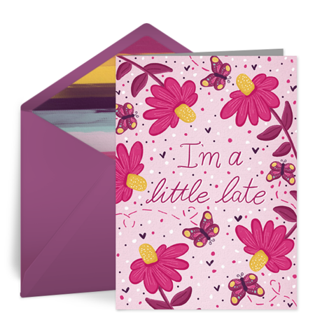 We love a good pun or a clever turn of phrase. Choose one of these funny Belated Birthday Cards and Messages to add a little bit of humor to the situation: