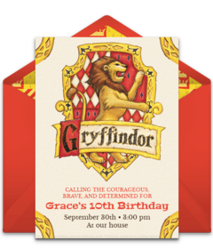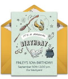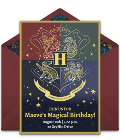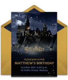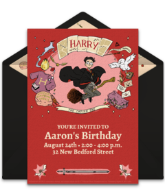 To start, set the stage for your event and build excitement among guests with online Harry Potter invitations. Browse a wide range of Harry Potter invitations that feature Hogwarts, Harry and his crew, Hedwig, and more. Customize your favorite invitation with important event details, deliver instantly by text or email, and gather RSVPs in minutes.
