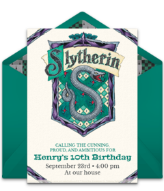 Is your little one brave and determined? Or loyal and dedicated? Send Harry Potter invitations based on their Hogwarts House. Whether it’s Gryffindor, Hufflepuff, Ravenclaw, or Slytherin, these invites will help create a festive atmosphere for your celebration before it even begins.