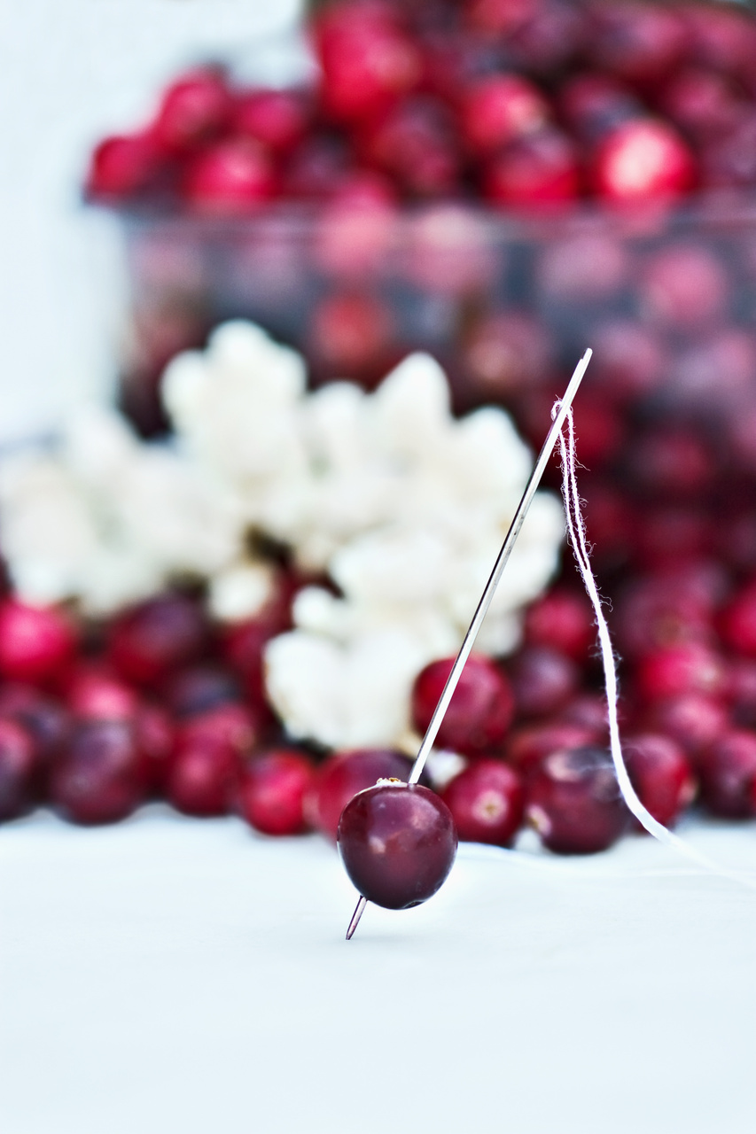 - String cranberries on some fishing line or craft wire to make a cranberry decoration garland. Hang the garland on the Christmas tree, across the mantel, or strung through a chandelier.