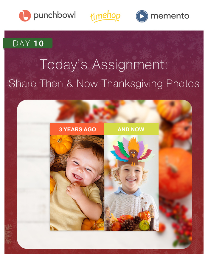 The 25 Days of Holiday Memories is a collaboration from Punchbowl®, Timehop® & Memento® where we help you get organized and make the most of the holiday season. Sign up here and get daily assignments delivered to your inbox.