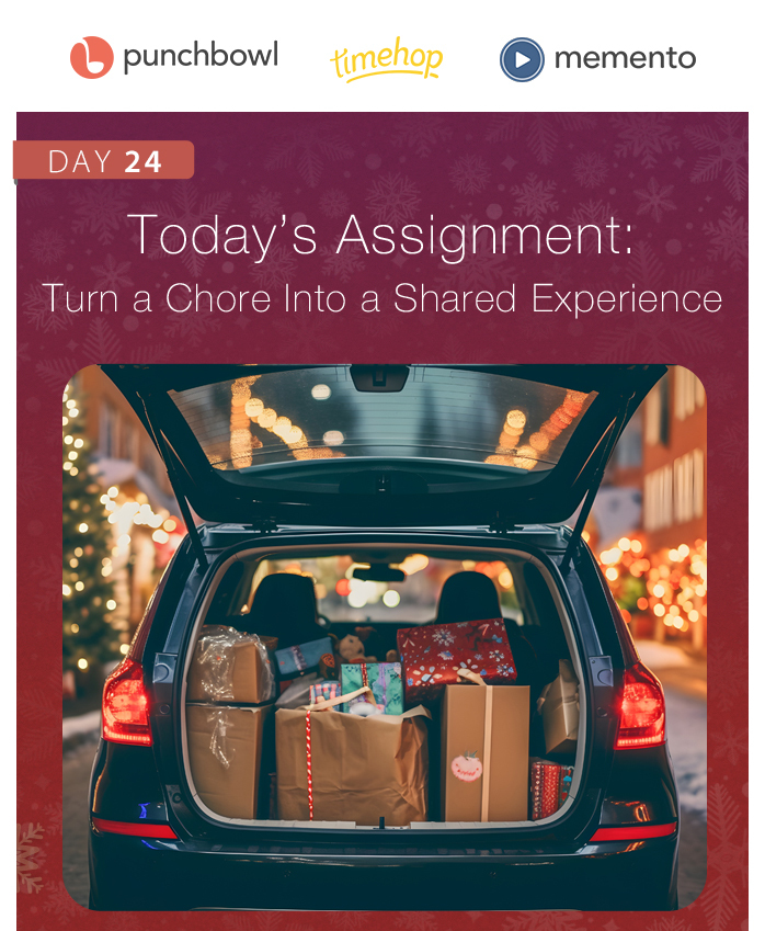 On Day 24, the penultimate day of our challenge, it’s time to wrap up all your holiday prep. Today, we’ll tackle your to-do list, but in a fun and festive way that will help you create new memories.