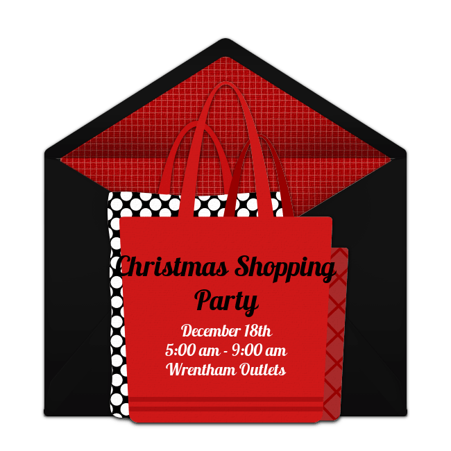 - Last-Minute Shopping Party: Still have a few more gifts to get? Invite guests to gather with their laptops and credit cards at the ready, or hit the mall together. Swap gift ideas for the hard-to-shop-for, share coupons and other holiday deals, and check everyone off your list. Almost qualify for free shipping but not quite? Combine online orders with another guest to get those gifts in hand without spending a dime on delivery. For in-person shopping, divide up your shopping lists and send one person off to each store to maximize your time.