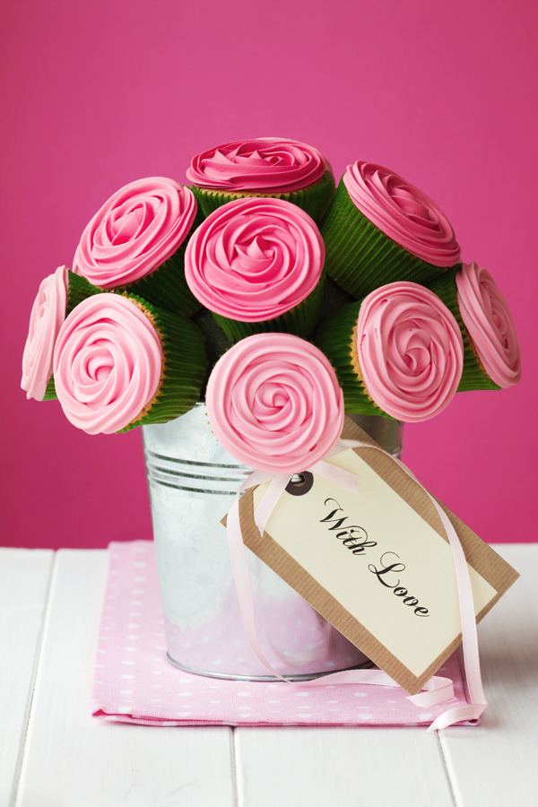 - Create a bouquet of cupcakes like the photo above. A simple tin container and a handmade card add shabby chic baby shower elegance. This cupcake centerpiece would be stunning as the focal point of a baby shower dessert table.