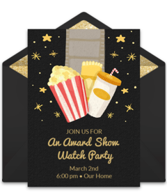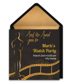 Regardless of what the winner is awarded, be sure to let guests know about any participation fees and other event details in digital Oscars party invitations. Customize gorgeous Oscars watch party invitations and deliver by text or email in minutes.