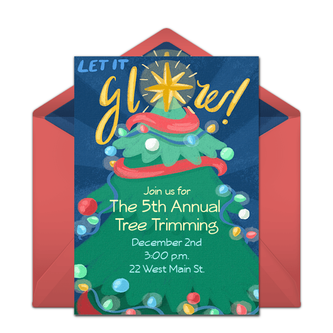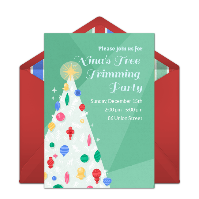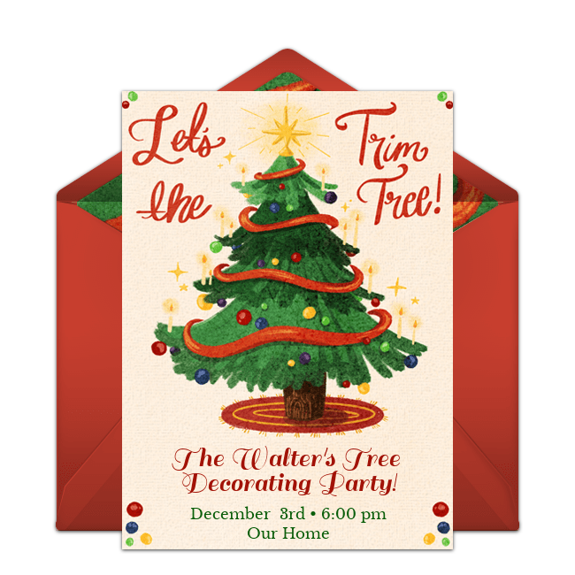 - Decide whether you'll decorate your tree on your own, or host friends and family for a tree-trimming party. It can be really helpful to have extra hands - and a fantastic way to get into the holiday spirit. If you'd like to include others, here are a couple of our favorite Tree Trimming Party invitations you can send by text or email: