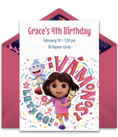 Throw a fabulous celebration for your girl or boy with a Dora theme. Get started by personalizing free Dora invitations today!