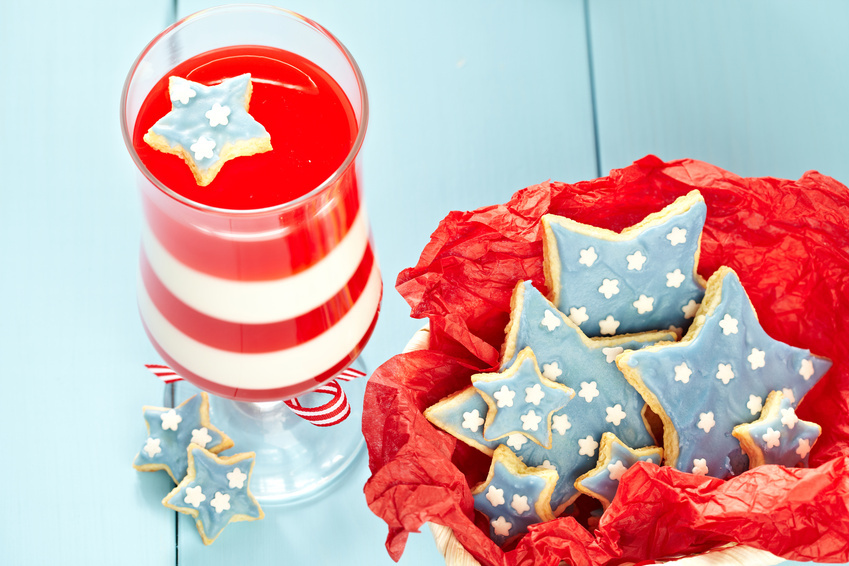 Red, white and blue lollipops make great 4th of July desserts. Purchase red, white and blue chocolate; or make the colorful chocolate yourself by buying white chocolate and adding food coloring. Visit your local craft store to find lollipop molds in the shape of stars, flags or Uncle Sam’s hat! Don’t forget to place sticks in the lollipops before they set and cool. Patriotic lollipops also make fantastic July 4th party favors!