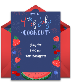 If your July 4th party is a potluck, make sure to have enough desserts. Depending on how many people you plan to have at the party, you'll want at least 4 or 5 different desserts. Other popular July 4th desserts include all-American apple pie, patriotic sugar cookies, and red, white and blue fruit trifles. And be sure to set the stage for your event with gorgeous digital July 4th invitations. Customize your favorite design, send via text or email, and gather RSVPs online!