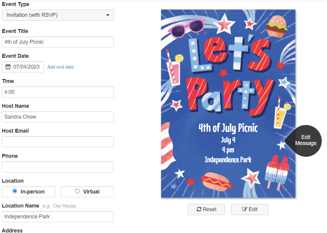 Don’t forget the details: Before sending out your invitations make sure you have included all of the important party details. Things such as the time, date, location, and a contact number are all essential. Also remember to send out your July 4th invitations 3-4 weeks in advance to give your guests enough time to RSVP.