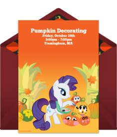 Decorate with lots of orange and pumpkin decorations for this party. Have all of your guests bring their own pumpkin and provide them with paint, markers, glitter, paper, and everything they need to decorate their pumpkin. If the kids are older, or their parents are invited too, try pumpkin carving! An easy party favor from this party (besides their pumpkin) is a photo keepsake. Take pictures of everyone with their pumpkin, and include a photo in a free thank you eCard to each guest.