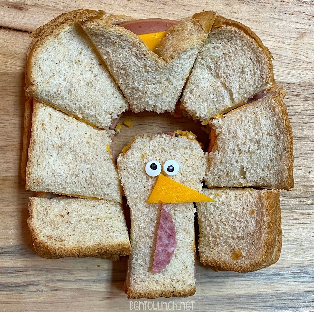 Offer kids Thanksgiving snacks to the little ones to keep them from losing patience before the meal. Put together nutritional options such as finger sandwiches. To start, place pieces of turkey in the sandwich. Cut the sandwich into four smaller squares to make finger sandwiches. Decorate each sandwich to resemble a turkey. Position each piece to look like a diamond. Cut out a circular piece of bread and place it on top of the diamond for the turkey’s face. Adhere it with vegetable cream cheese and place dabs of vegetable cream cheese on the circle and put peas on top for the turkey eyes. Create the waddle with a piece of carrot. Create turkey feathers with slices of cucumber, peppers, or slivers of almonds. Stick them to the vegetable cream cheese spread in between the two pieces of bread. Make sure the “feathers” are visible on the top left and right of the turkey diamond.