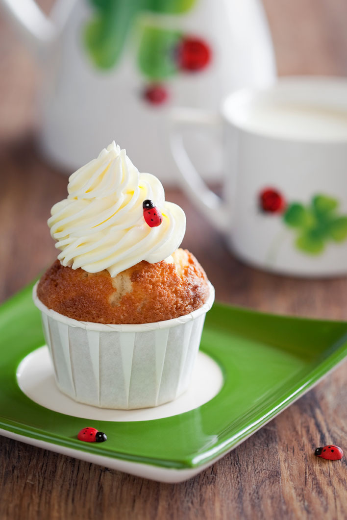 - Cake: Serve a delicious ladybug birthday cake or cupcakes for dessert! To make the cake yourself, bake two circular cakes - a larger cake and a smaller cake. Frost the smaller cake with chocolate frosting and attach two Twizzlers for antennas (this is the head). Frost the larger cake with red frosting (this is the body). Place Oreos all over the cake to look like spots.