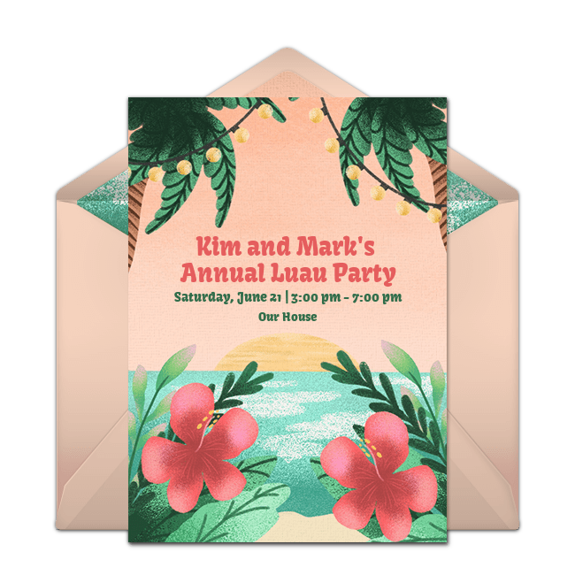 Are you hosting a luau-themed celebration? Party planning for a fun themed event like this can be overwhelming. Quick tip: send online luau party invitations by email or text to set the stage for your event and easily manage RSVPs.