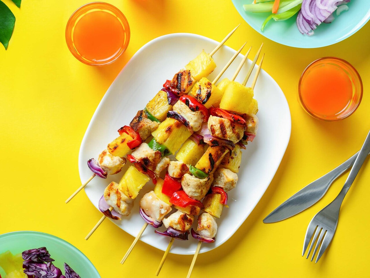 Once you send your invitations, it's time to plan your menu. Hawaiian luau food is tropical and zesty, so pick recipes that incorporate traditional Hawaiian ingredients such as coconut, pineapple and kiwi. Also, pick only a few dishes to serve that are easy to prepare to save you time. Here are some simple luau recipes, desserts, and cocktails to help you put on memorable Hawaiian celebration.