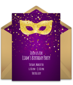 If you're hosting a Mardi Gras party, be sure to set the stage for your event with online Mardi Gras invitations. Customize and send from any digital device in minutes!