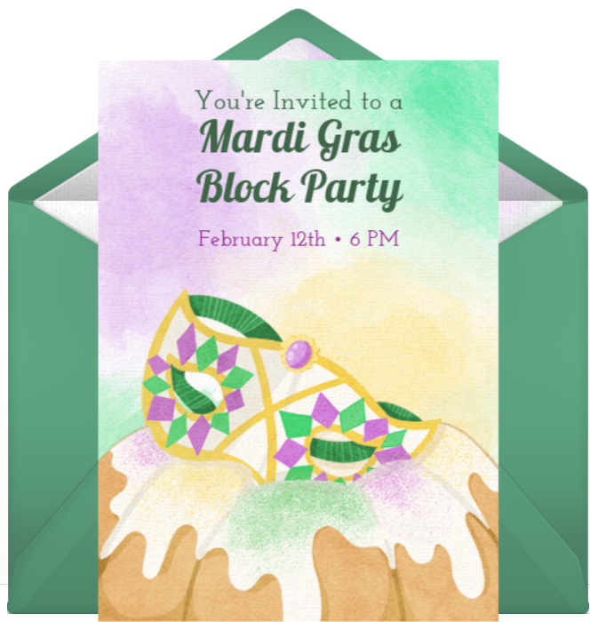 Ready to get started? Browse gorgeous Mardi Gras invitations, customize your favorite, and deliver by text or email instantly!