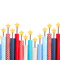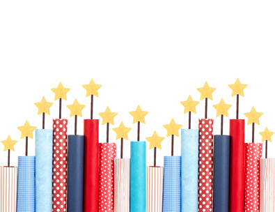 - Paper Fireworks: Gather scraps of paper and wrapping paper that have red, white, or blue patterns. You'll also need yellow or gold paper, newspaper, some toilet paper and papertowl rolls, glue, thin wood dowels, and scissors. Begin by wrapping each of the toilet paper and paptertowl rolls in the patterned paper. Secure each one with a thin layer of glue. Next, cut out paper stars using the gold or yellow paper. (Tip: Trace a star-shaped cookie cutter if you want them to be uniform.) Attach two stars to the top of each dowel, one on either side, and glue the edges together. Place one dowel inside each of your decorated rolls and stuff with newspaper to hold in place. Decorate a table with a pretty arrangment of your red, white, and blue crafts!