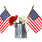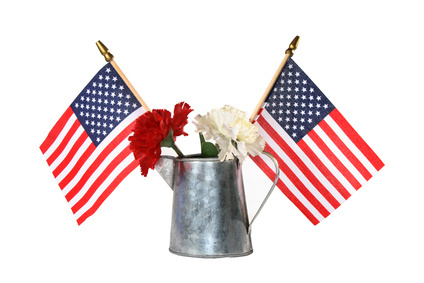 • Centerpieces: Place Memorial Day centerpieces on the tables for guests to take home after the party. Centerpiece ideas include floral arrangements, balloons and flags in a jar. For the floral centerpieces, arrange red and white flowers (like carnations or roses) in a vase. Place a red, white and blue pinwheel in the center of the arrangement for an accent. For the balloon centerpiece, visit your local party supply store to purchase mylar balloons with a red, white and blue color scheme. Surround each of the mylar balloons with clear latex balloons and be sure to tie to sandbags so they don't float away! Another option is to place a bunch of small American flags on poles in a mason jar with sand at the bottom to anchor the arrangement.